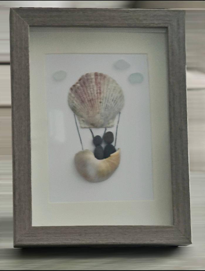 Begin by selecting from our collection of pebbles, sea glass, and driftwood to inspire your personalized art piece.